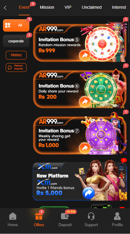 First and foremost, the AR999 Game offers a referral bonus program that rewards users for inviting friends to the platform. Furthermore, when someone registers and starts playing via a referral link or code, the inviter earns bonus credits or cash rewards. In addition, this incentive system often pays recurring or lifetime rewards whenever the referred user plays or deposits funds, making passive earnings possible.